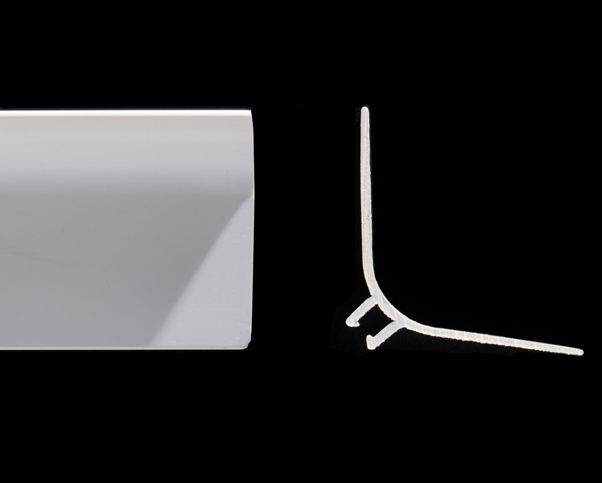 A large internal corner trim used when the sheet is not thermoformed. This trim makes the 90° internal corner.